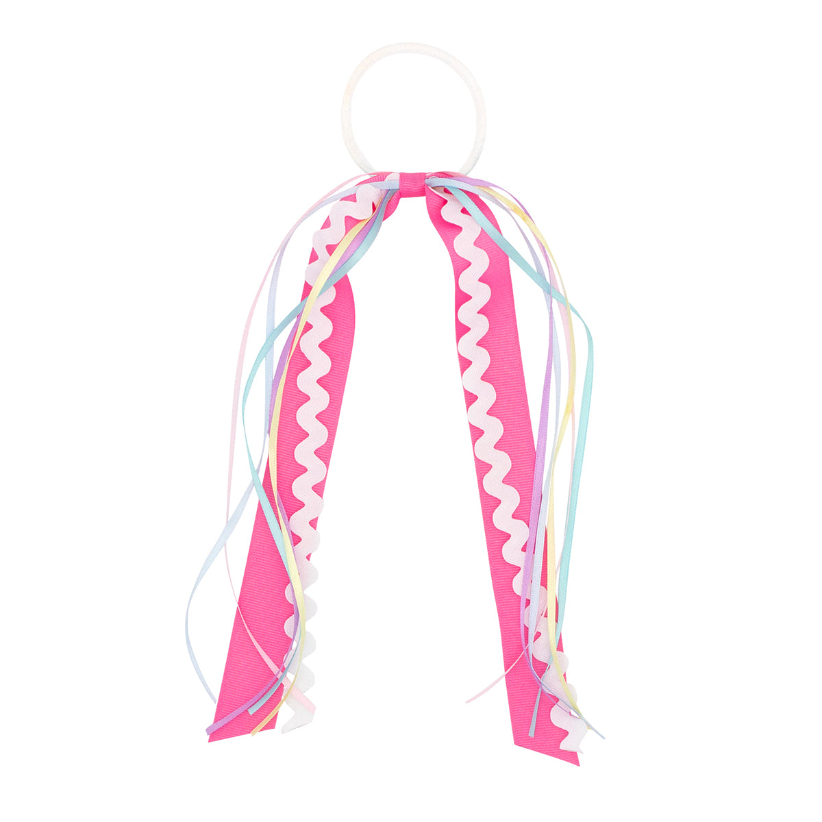 Hot Pink Ric-Rac with Grosgrain and Satin Streamers on a Ponytail Holder by Wee Ones