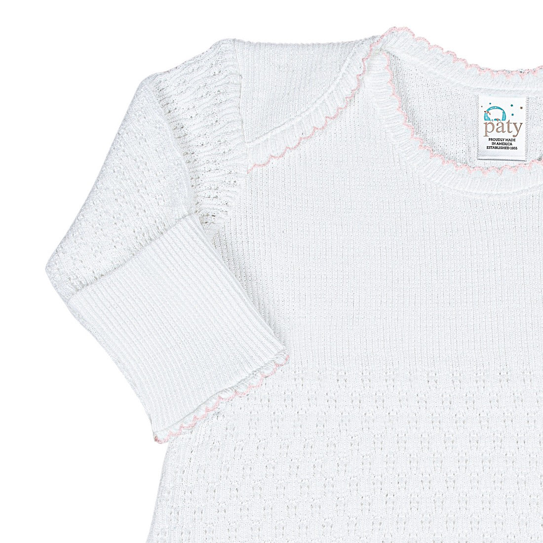 Knit Lap Shoulder Newborn Day Gown w/ Pink Trim by Paty