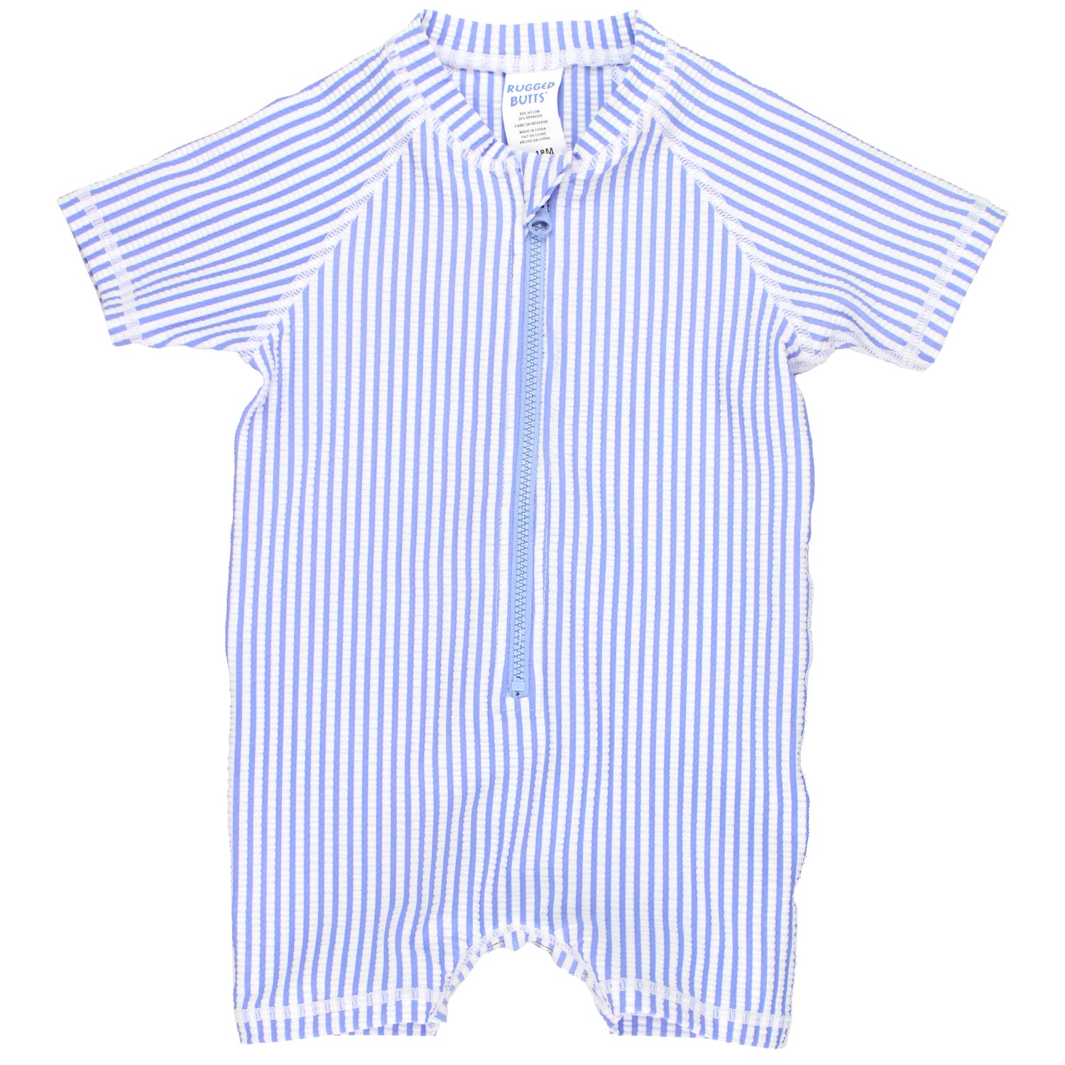 Periwinkle Blue Seersucker Short Sleeve One Piece Rash Guard by RuggedButts