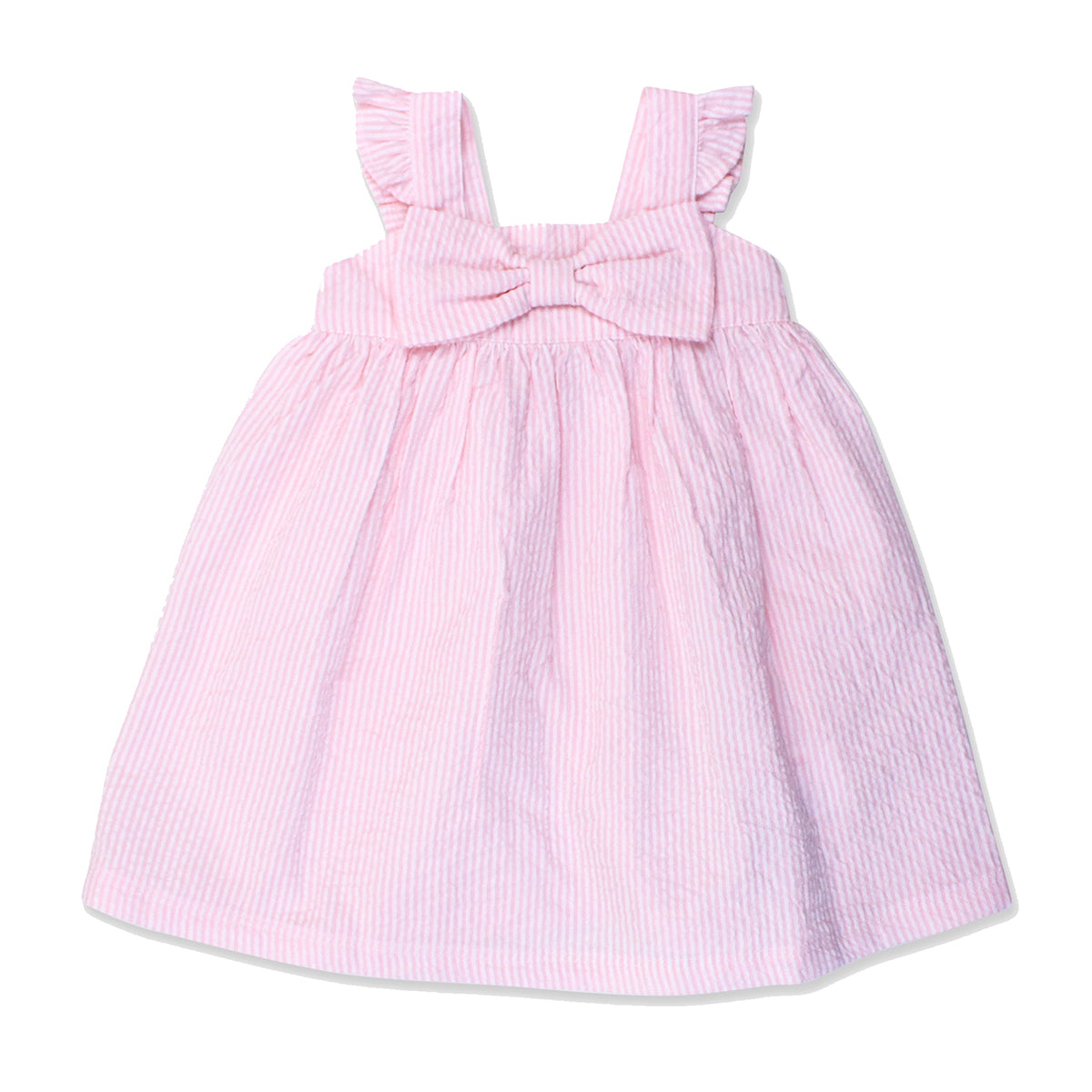 Pink Seersucker Flutter Bow Woven Dress by RuffleButts