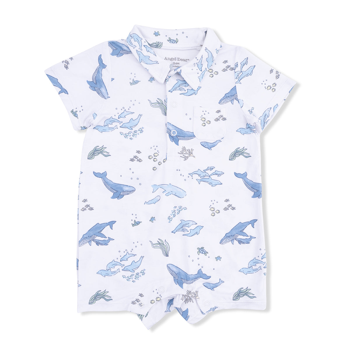 Watercolor Blue Whales Polo Shortie by Angel Dear
