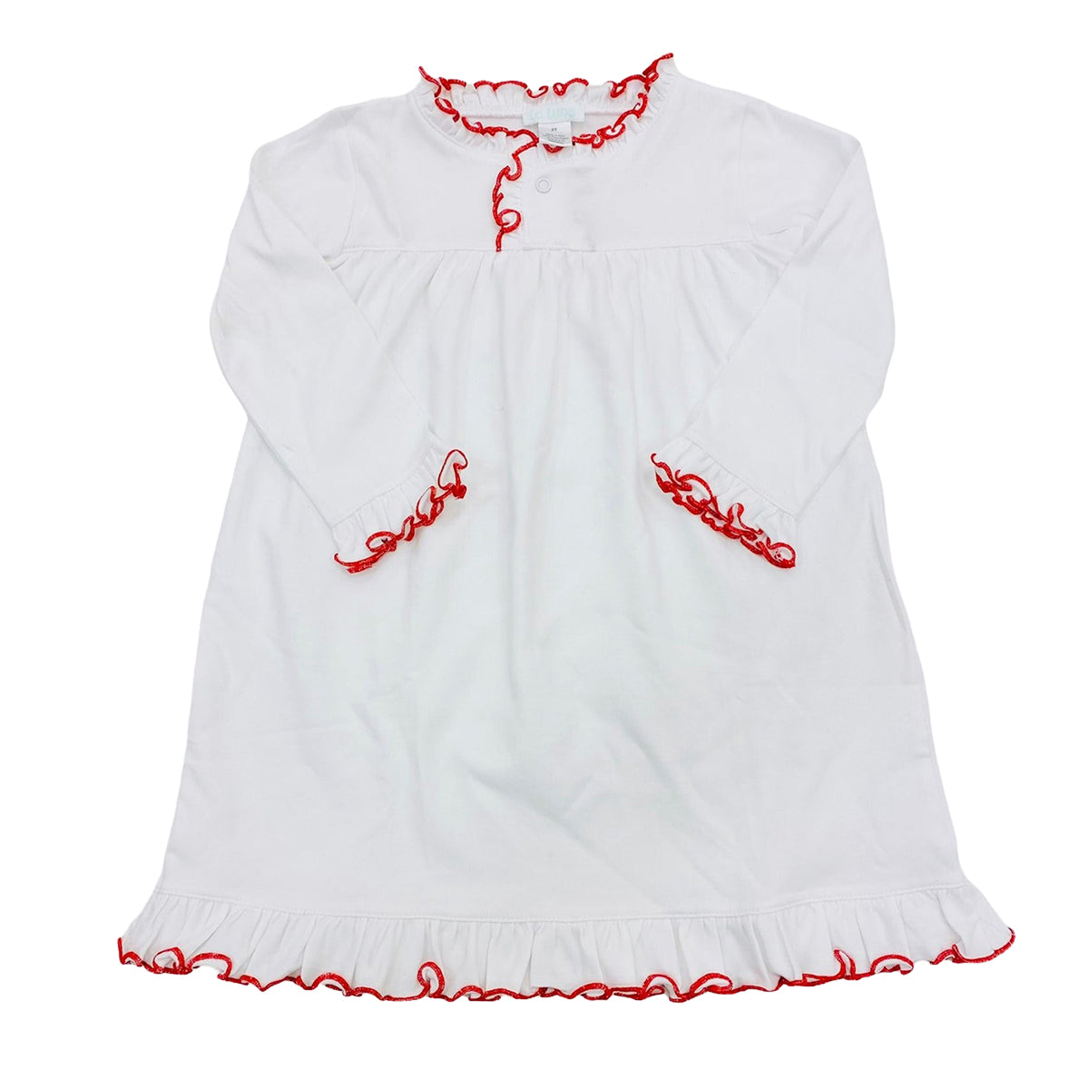 White with Red Trim Pima Christmas Morning Dress by La Luna